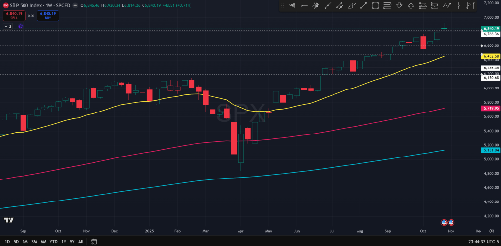 Looking at the weekly chart of the SPX (shown on top), one can see that this week’s candle had a prominent wick on top, which after a new ATH is generally not a whole lot confidence inspiring.