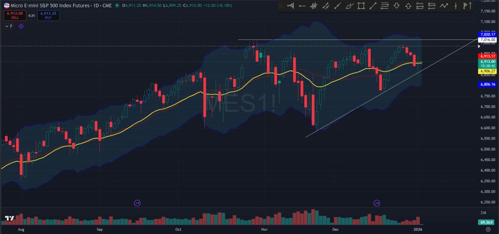 Note how the sell-off poked below the 21EMA on the daily briefly but never really materially closed below it and bounced in the first trading day of 2026.