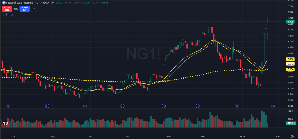 Natural gas had a huge rally over the first half of the week on the prospect of monster winter storm sweeping across the US and the deep freeze that impacted a bunch of northern states. In Chicago we largely missed out on the heavy snow and icing event but the cold was definitely real. The idea of moving to California at some point in the future is certainly growing very attractive to me.