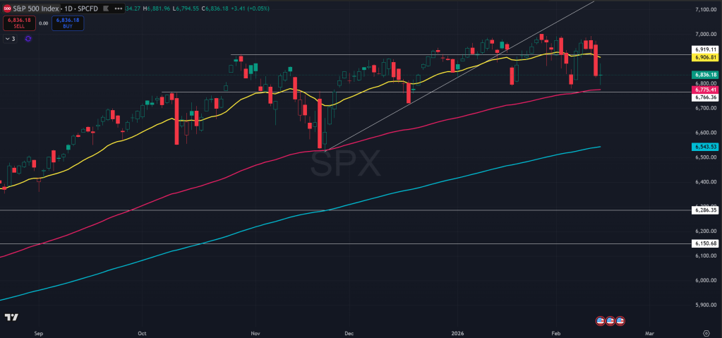 We came close to hit the 100EMA on the daily which was hit last time late in 2025. SPX 7000 level has formed a very strong resistance level over the past few weeks and months.